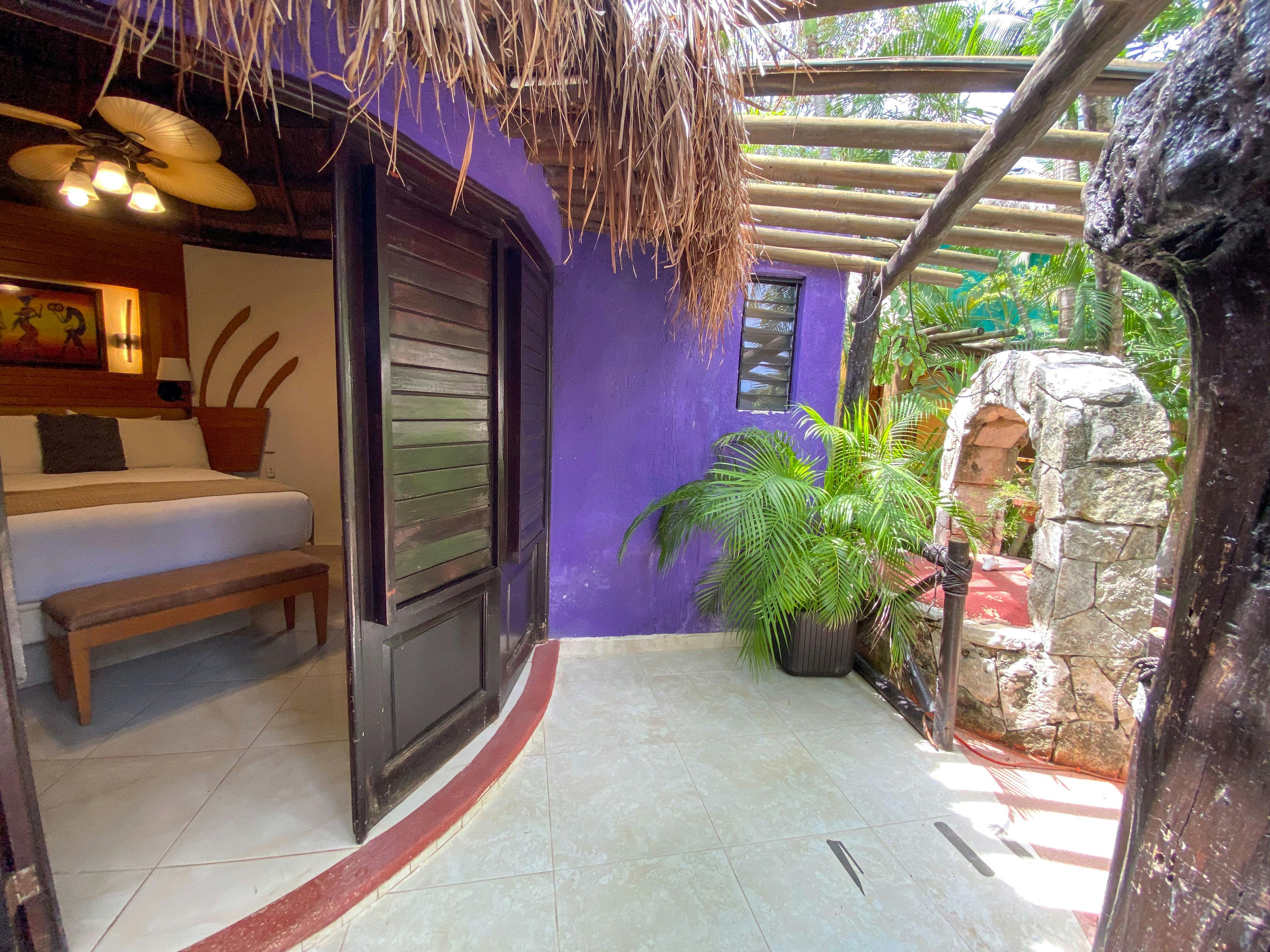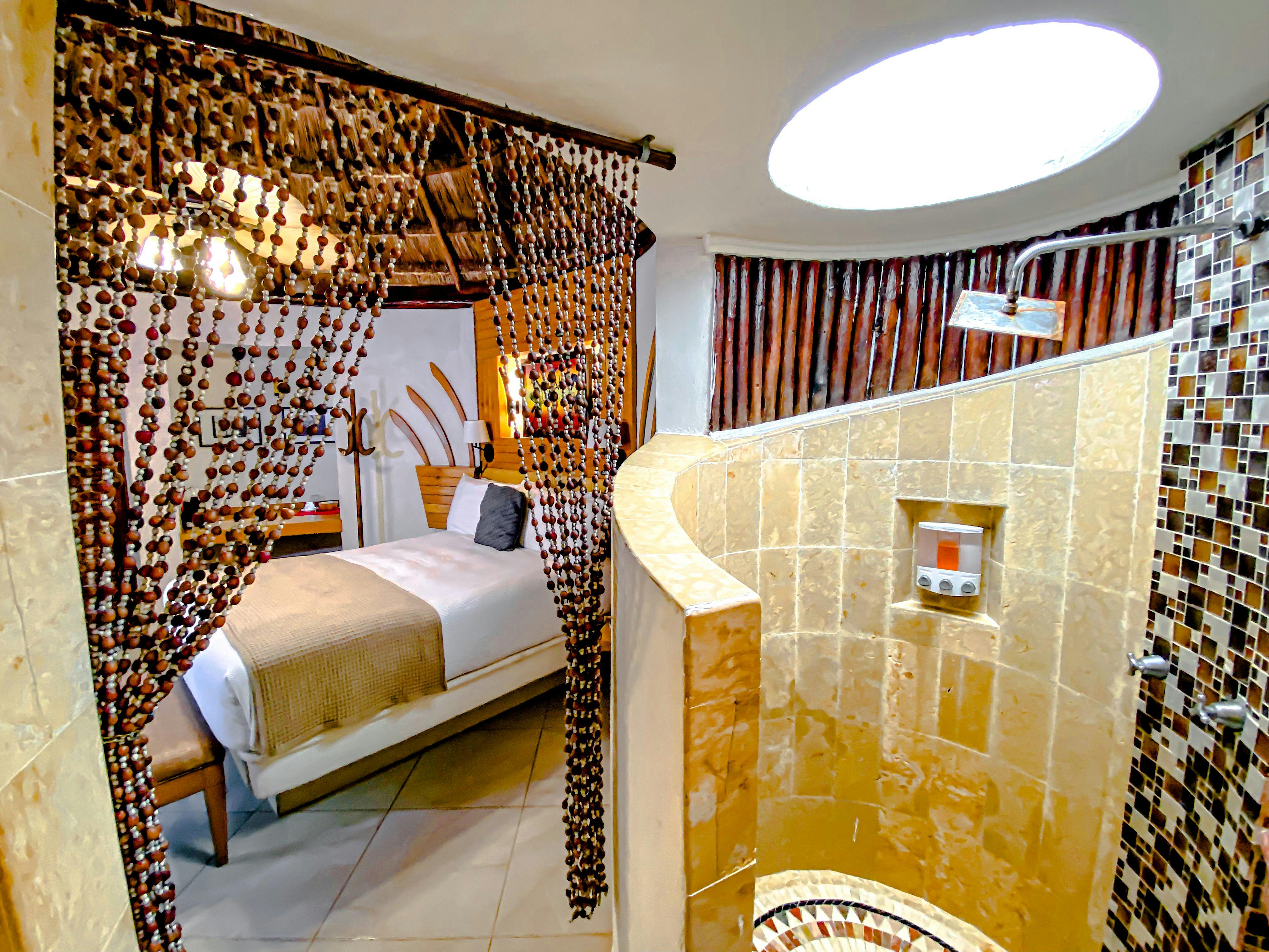 Cómodos bungalows de estilo rústico que ofrecen una cama queen size. Aire acondicionado, ventilador de techo, televisión por cable, terraza, secadora de cabello, internet inalámbrico gratuito y cafetera. Vista al jardín.