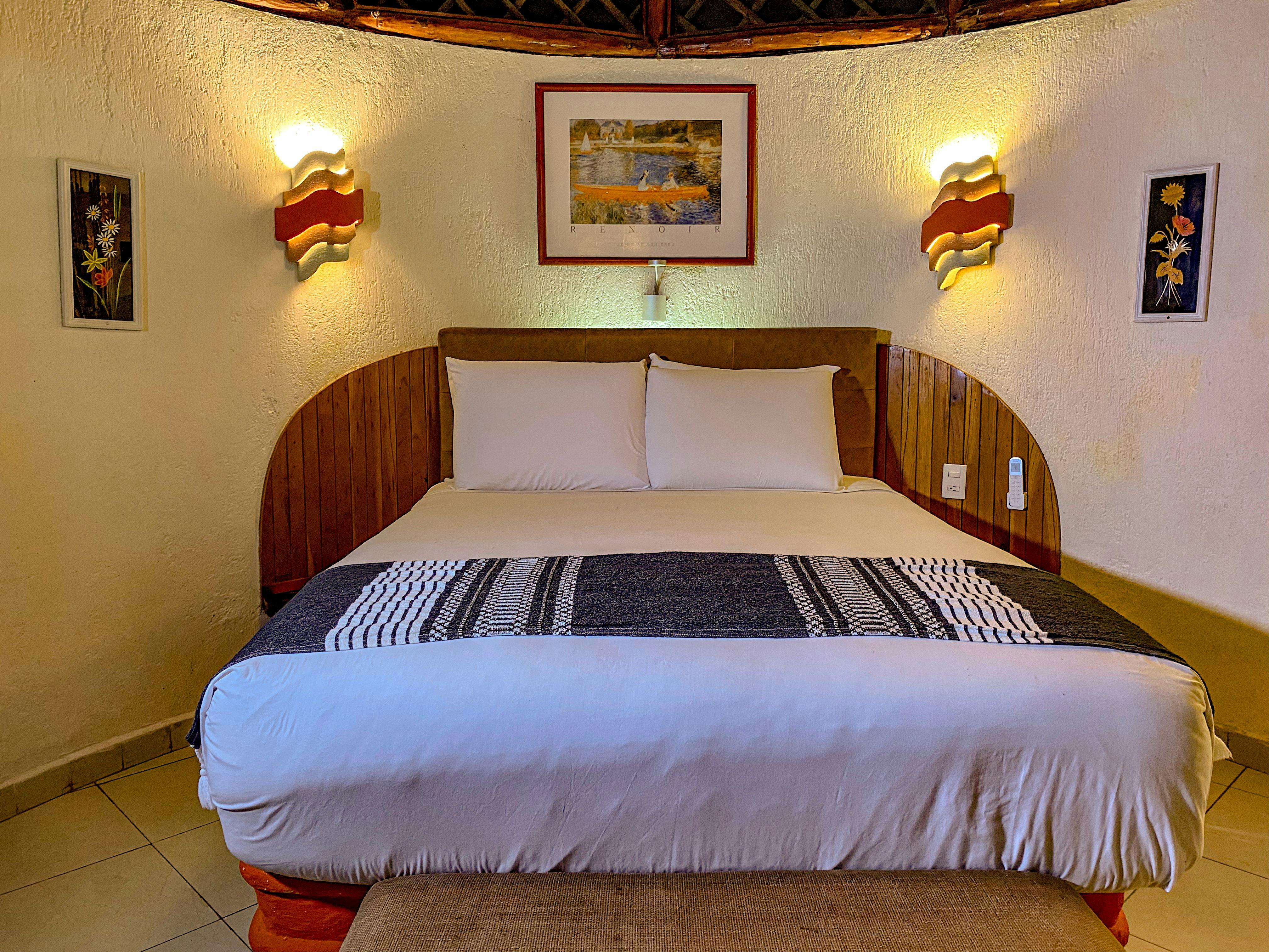 Cómodos bungalows de estilo rústico que ofrecen una cama queen size. Aire acondicionado, ventilador de techo, televisión por cable, terraza, secadora de cabello, internet inalámbrico gratuito y cafetera. Vista al jardín.